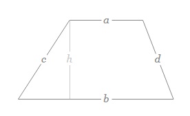 梯形的面積是指梯形在二維平面內覆蓋的區域。梯形的面積,其中平行邊的長度為 a 和 b,梯形的高度為 h,由下式給出: