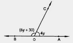 如果圖中∠AOC = 4y 且∠BOC = (6y + 30),那麼y 的值為多少才能使AOB成為一條直線?