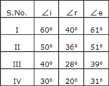 在所有選項中,只有從觀察 (IV) 或選項 (d) 中,我們才能得到 i 和 r 的正弦值的比率為 1.5。