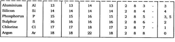 表:前十八種元素的原子組成及其在不同殼層中的電子分佈