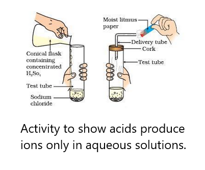 一個實驗來證明酸只有在水溶液中才能產生離子。
