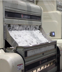 透過軋棉的過程,棉籽和棉纖維與棉花球分離。