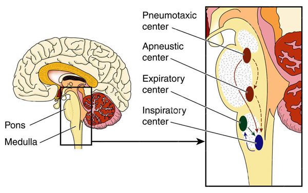 腦橋 | 它是中繼中心。它也是呼吸中樞的呼吸調節區。 |