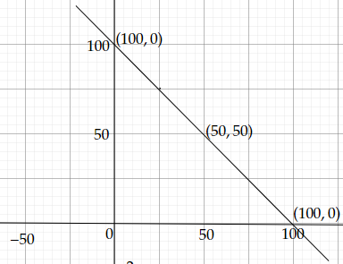 讓我們在方程x+y=100中分別代入x=0, 50, 100和y=100, 50, 0