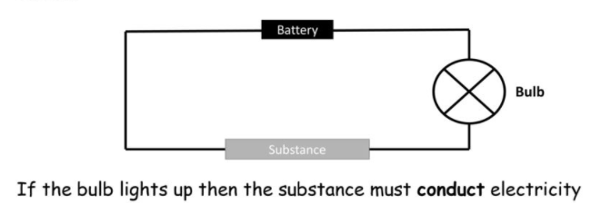 我們知道電流只能透過導體流動。要測試給定物體是否為導體,我們必須將其放置在電流路徑中,並觀察電流是否透過它。