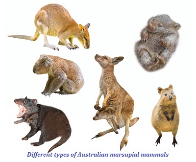 A2. 有袋類哺乳動物通常被稱為有袋動物。與胎盤動物不同,它們產下活的幼崽,並且沒有長期的妊娠期。例如袋鼠。