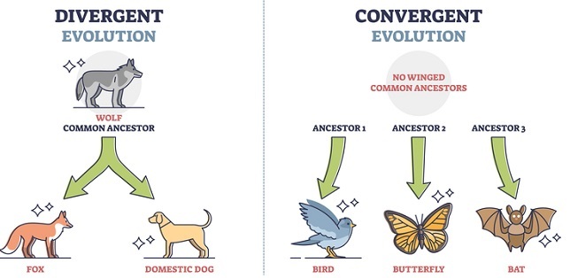 趨同進化是指不相關物種中相似特徵的獨立發展。當不同的物種在同一棲息地中共存時發生。趨同進化作為對類似環境刺激的反應,在不相關物種中產生等效特徵。雖然等效特徵具有不同的解剖結構,但它們在功能上是相同的。