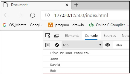</html>要執行以上程式,請儲存檔名為“anyName.html(index.html)”並右鍵單擊該檔案。在 VS Code 編輯器中選擇選項“用 Live Server 開啟”。