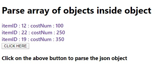 以下是使用地圖或 forEach,使用 JavaScript 解析物件內部的物件陣列的程式碼 −