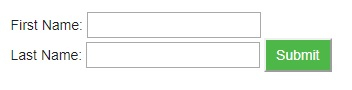 以下是上述表單的實際輸出,您輸入姓和名,然後單擊提交按鈕檢視結果。