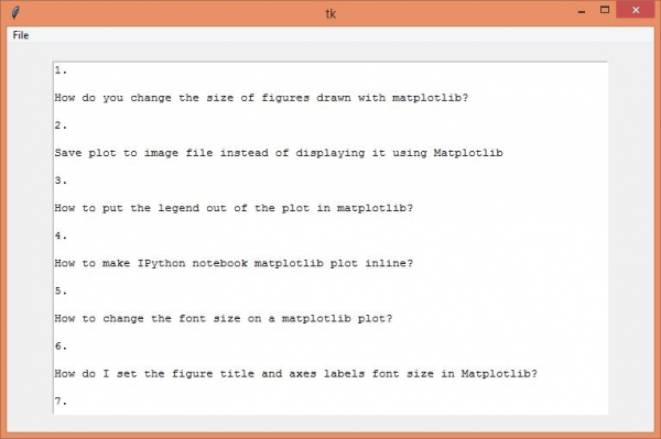 執行以上程式碼將顯示一個功能齊全的 tkinter 應用程式。它具有開啟檔案、清除檔案和退出以終止應用程式的功能。