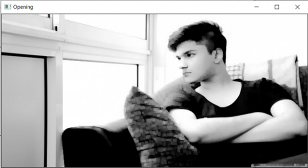 import cv2 import numpy as np image = cv2.imread('testimage.jpg') kernel = np.ones((5,5), np.uint8) image = cv2.morphologyEx(image, cv2.MORPH_OPEN, kernel) cv2.imshow('Opening', image)