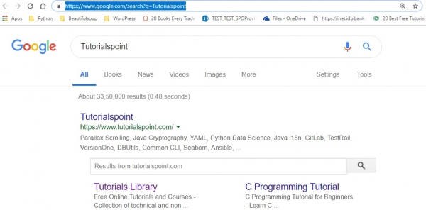 我在上面搜尋了查詢“tutorialspoint”,它將彈出一個瀏覽器視窗,顯示: