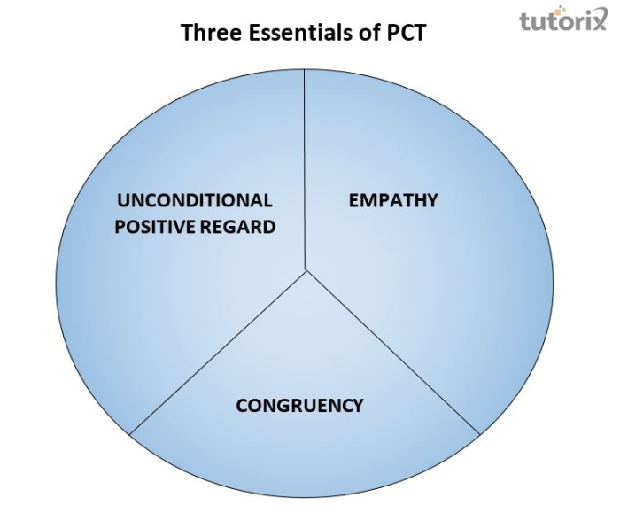 羅傑斯提出了三個核心條件,這些條件對於以人為本療法是必要且充分的。它們是: