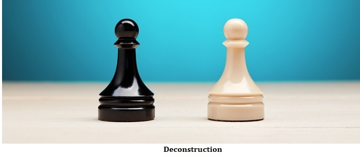 解構是社會科學中使用的一種批判型別,由雅克·德里達發展,並受到後現代主義的啟發。它揭示了實體(如類別或社會秩序)中與它們表面性質相矛盾的隱藏方面。這種方法可以用來展示其他對立面,例如白與黑。解構可能會使社會科學的完整性受到質疑,社會科學家應該警惕不要將自己的觀點強加於他人。因此,客觀性的性質和環境是社會科學哲學中的根本問題。