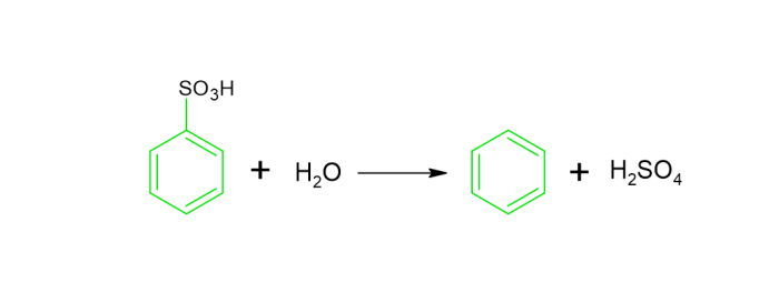 **由磺酸製備苯** - 苯可以由磺酸的水解制備。在這個過程中,酸在熱水中進行水解,得到苯。