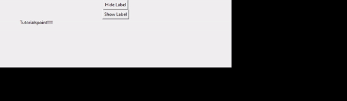 我們建立了一個 Tkinter 視窗並添加了一個顯示文字“Tutorialspoint!!!”的標籤部件。我們還包含了兩個按鈕:“隱藏標籤”和“顯示標籤”。