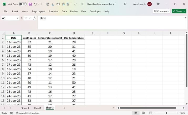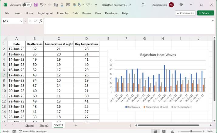 所需的圖表將在工作表中生成。使用者需要更改圖表標題“拉賈斯坦邦熱浪”。