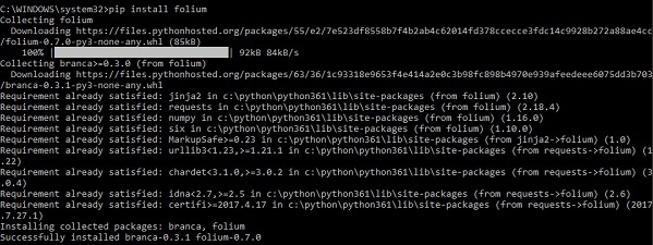 使用 pip 安裝 folium 非常容易−