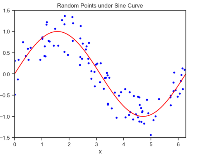 plt.title('正弦曲線下的隨機點')將繪圖的標題設定為'正弦曲線下的隨機點'。