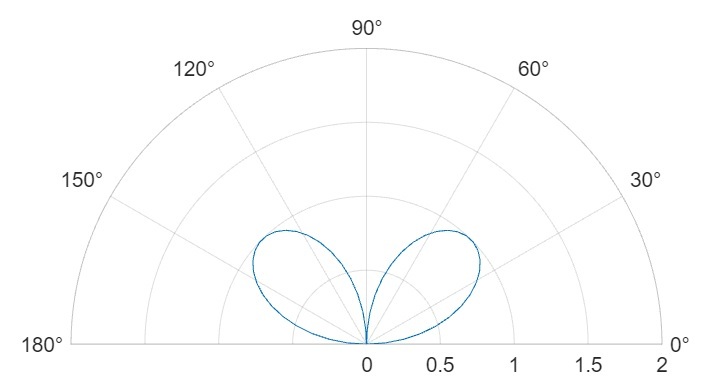 % MATLAB code to customize polar axes limits % Create a polar axis ax = polaraxes; % Create data for polar plot t = linspace(0, 2*pi, 100); r = sin(2*t); % Create a polar plot of the data polarplot(ax, t, r); % Customize the polar axis limits rlim([0, 2]); % Radial axis limit thetalim([0, 180]); % Theta axis limit