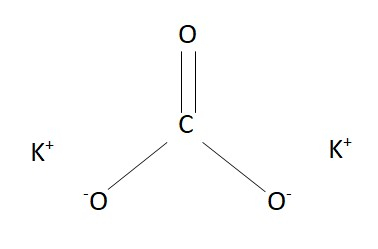 碳酸鉀的化學式為 $\mathrm{K_2CO_3}$。它具有兩個鉀陽離子和一個碳酸根陰離子。在 -47°C 時,它可以在地下發現為珍貴的寶石。分子質量或分子量為 138.205 g/mol。它具有白色和強吸溼性外觀。其密度為 2.43 g m/L,熔點為 891°C。它在水中表現出可溶性,而在甲醇、乙醇和丙酮中表現出完全相反的反應。當它高度溶解在水中時,它也具有固體和可溶性鹼的排列。