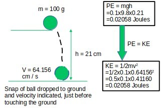 答:當球體下落時,PE 轉換為KE。在即將撞擊地面之前,PE 完全轉換為 KE,而 PE 變為零。