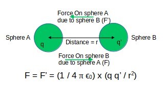 當電場中存在兩個電荷時,以下公式適用 $\mathrm{U_e=k(q_1 q_2/r)}$,其中 k 是庫侖常數(8.99×109 Nm2 C-2),r 是電荷 q1 和 q2 之間的距離。