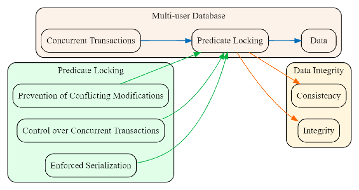 為了在資料庫管理系統(DBMS)中同時確保併發控制和資料完整性。採用了多種鎖定機制,其中一種是謂詞鎖。透過利用這種特定的鎖來保護儲存資訊的特定部分免受尋求同時訪問的衝突操作的影響。
