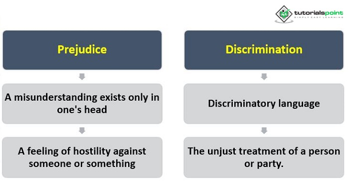 偏見是對他人自動且不合理的運用自己的先有觀念、價值觀和標準,而不給他們任何好處。相反,歧視包括實施這種想法和信念。