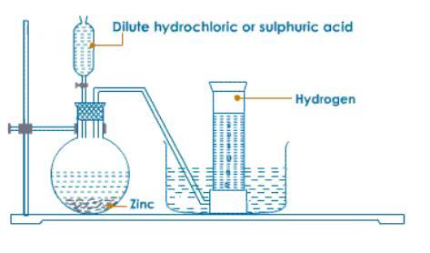 在實驗室中,可以使用粒狀鋅和稀鹽酸製備氫氣。也可以透過使過量的鹼性水溶液與鋅反應來製備氫氣。反應方程式如下: