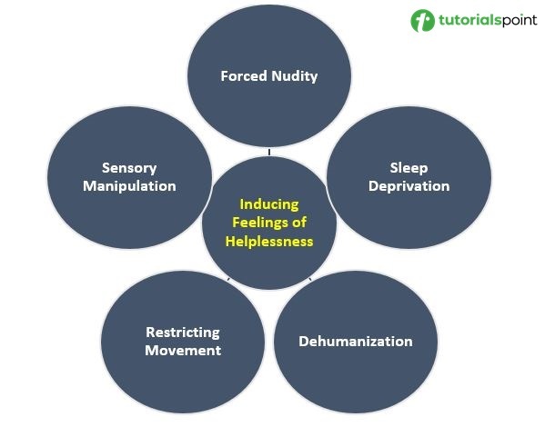 **強制裸體**——剝奪受試者的衣物及其尊嚴,會灌輸一種深深的脆弱感和羞恥感。這會觸及社會焦慮和害怕暴露的恐懼,尤其是在裸體被視為禁忌的文化中。審訊人員獲得了凌駕於受試者之上的權力地位,受試者會感到物化和無助。