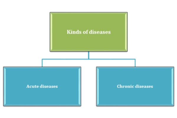疾病的方面可以分為幾個組,但主要包括急性疾病和慢性疾病。急性病感染一個人短時間,並且往往出乎意料地發展。例如,急性病可能包括在所有年齡段的人群中常見的感冒和流感。