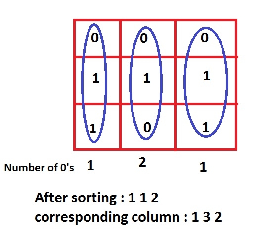 sorted order of zeroes count is : 1 3 2