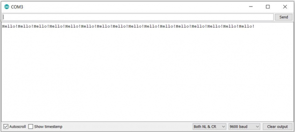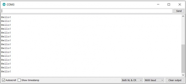 }請注意,Serial.begin() 的引數表示波特率。你需要將序列埠監視器的波特率設定為此值,才能正確讀取列印的訊息。通常,你的微控制器傳輸波特率與序列埠監聽波特率之間的差異會導致垃圾值在序列埠監視器上打印出來。
