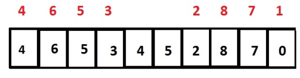 Input: array[] = {4, 6, 5, 3, 4, 5, 2, 8, 7, 0}