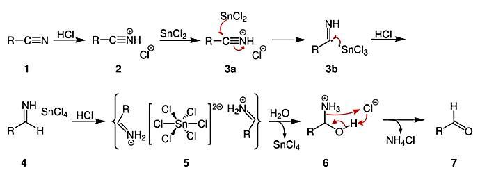 醛也可以透過Stephen反應製備。其定義是:首先,腈、氯化亞錫和鹽酸生成亞胺化合物。然後,亞胺水解生成醛。