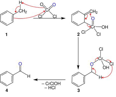 甲苯和鉻醯氯之間的反應生成鉻絡合物,該絡合物進一步水解生成苯甲醛。該反應也稱為Etard反應。