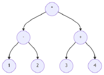 作為樹輸入給出的字尾表示式為 ['1', '2', '+', '3', '4', '+', '*']。如果對錶達式進行計算,則變為 (1 – 2) * (3 + 4);結果等於 -7。