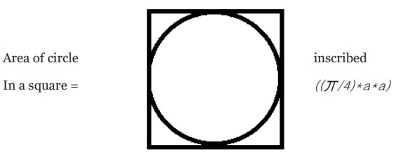 程式碼邏輯 - 使用公式((π/4)*a*a) 來計算內接圓的面積,為此我們需要定義數學上為 22/7 或 3.14 的π(π)的值。計算結果的表示式儲存在一個浮點變數中。