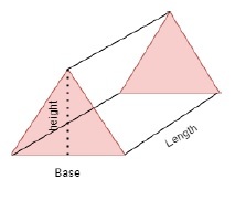 這裡,對於稜柱的一個三角形面,表面積 = 0.5 * base * height。因此,對於兩個三角形面,總表面積 = base * height。