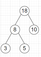 root = TreeNode(18) root.left = TreeNode(8) root.right = TreeNode(10) root.left.left = TreeNode(3) root.left.right = TreeNode(5)