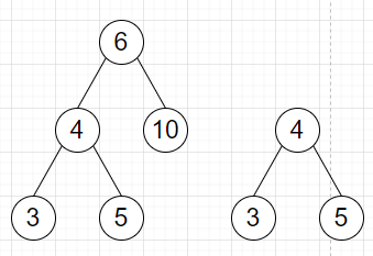 root1 = TreeNode(6) root1.left = TreeNode(4) root1.right = TreeNode(10) root1.left.left = TreeNode(3) root1.left.right = TreeNode(5) root2 = TreeNode(4) root2.left = TreeNode(3) root2.right = TreeNode(5)