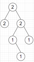 root = TreeNode(2) root.left = TreeNode(2) root.right = TreeNode(2) root.right.left = TreeNode(1) root.right.right = TreeNode(1) root.right.left.right = TreeNode(1)