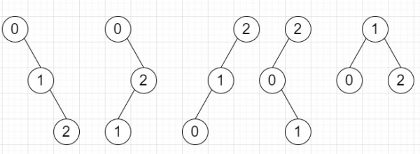 假設我們有一個數字n,我們需要找到使用[0, n)範圍內的數字可以生成的唯一BST的數量。如果答案非常大,則對10^9+7取模。