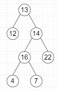 root = TreeNode(13) root.left = TreeNode(12) root.right = TreeNode(14) root.right.left = TreeNode(16) root.right.right = TreeNode(22) root.right.left.left = TreeNode(4) root.right.left.right = TreeNode(7)