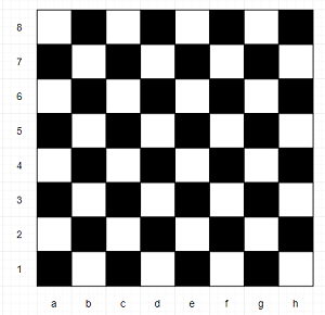 假設我們有一個棋盤座標,它是一個字串,表示棋盤上行列的座標。以下是供你參考的棋盤。