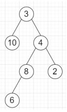 root = TreeNode(3) root.left = TreeNode(10) root.right = TreeNode(4) root.right.left = TreeNode(8) root.right.right = TreeNode(2) root.right.left.left = TreeNode(6) 6, 2