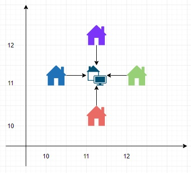 假設我們有一組位置座標點,這些點代表一些房屋的位置。如果想在 (xc, yc) 處建立一個服務中心,使得從任意給定點到 (xc, yc) 的歐幾里得距離之和最小,那麼我們需要找到這個最小距離之和。