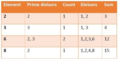因此,如果輸入類似於nums = [2,3,6,8],則輸出將為3